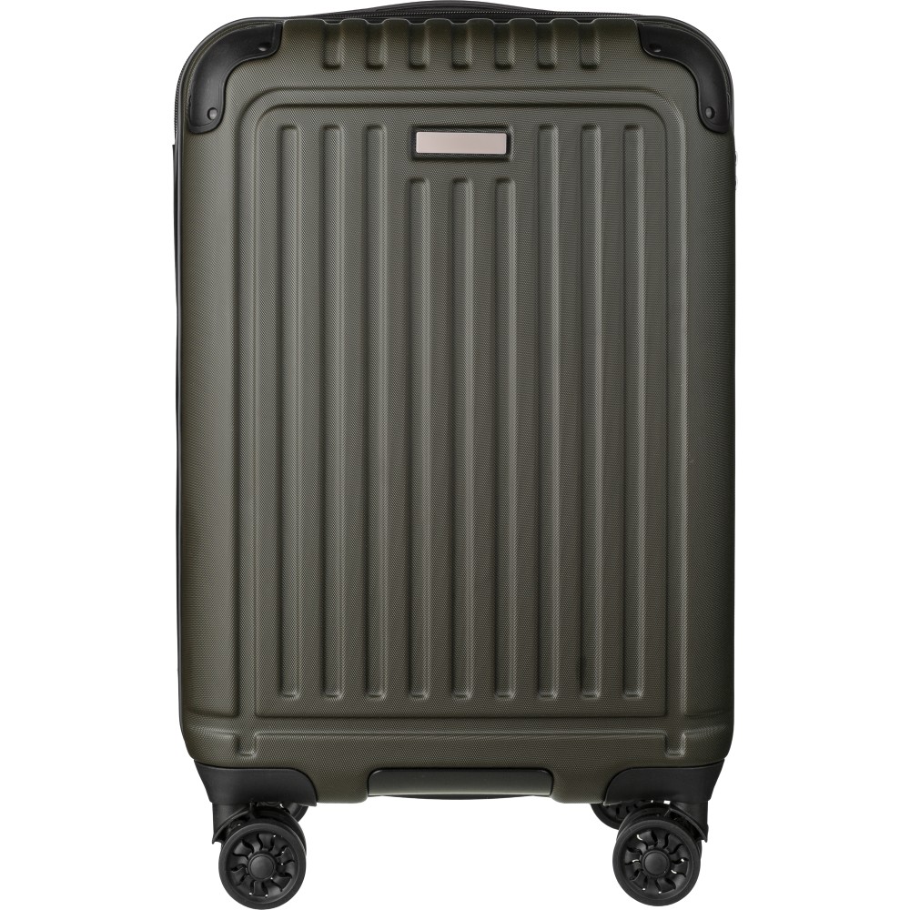 Gurulós bőrönd 8 kerékkel és háromszintű fogantyúrendszerrel. Beépített számzár és külön lapocska a lézergravírozáshoz. USB porttal.