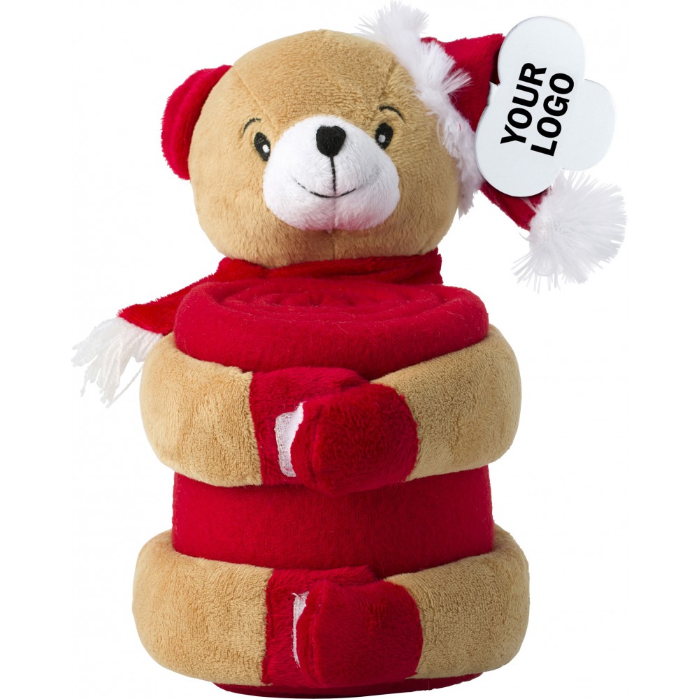 Puha plüssállat polártakaróval, emblémázható lappal. A takaró mérete: 102 x 77 cm.