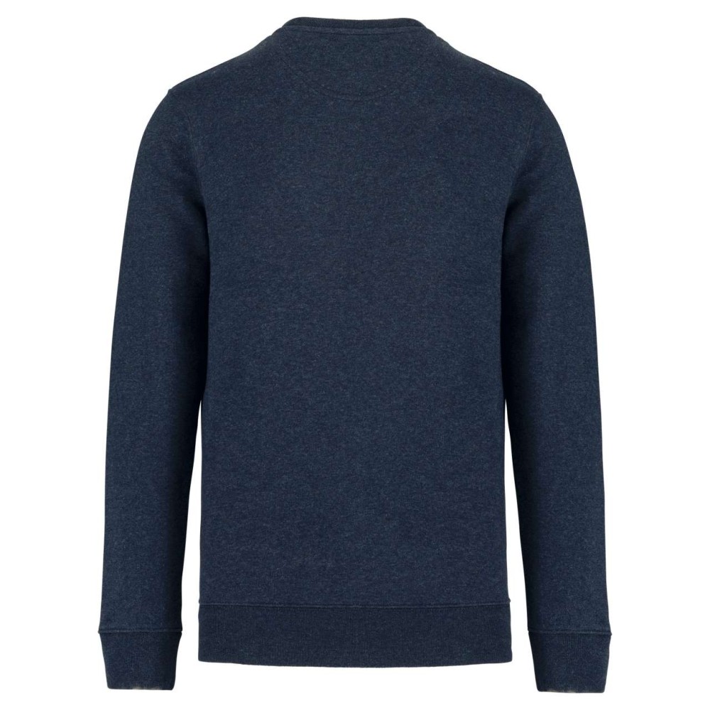 85 % bio, fésült pamutból és 15 % újrahasznosított poliészterből készült. Unisex. Egyenes szabás. LSF (Low Shrinkage Fleece: előzsugorított polár). Kerek nyakkivágás. Félhold alakú. Méretcímke organikus pamut és újrahasznosított poliészter logóval. 1x1 bordás nyakpasszé, alsó szegély és kézelő. Duplaöltés a kézelőn, karöltőben és kézelőn. Egyszeres felülvarrás a nyakkivágáson. Belső szalagozott nyakrész. A nyakrészen nincs márkajelzés, csak méretcímke a könnyebb dekorálás érdekében. A ruhadarabhoz kartonpapírból készült ismertetővel, amely felsorolja a felhasznált környezetbarát anyagokat. OEKO-TEX N CQ1007/7 STANDARD 100 tanúsítvánnyal rendelkezik. IFTH. 350 g/m2.